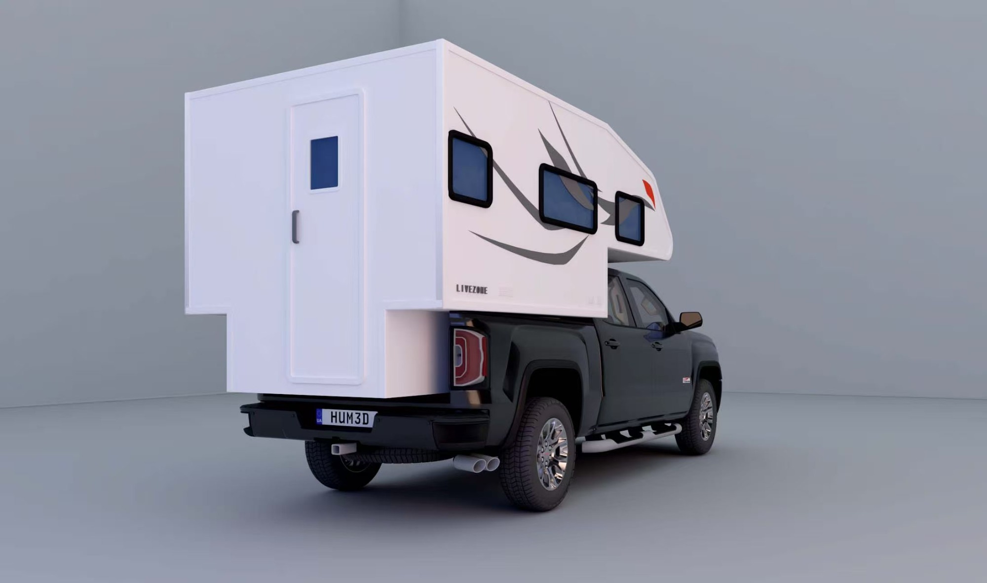 • Die Kabine ragt 500–600 mm über das Heck des Pickups hinaus.